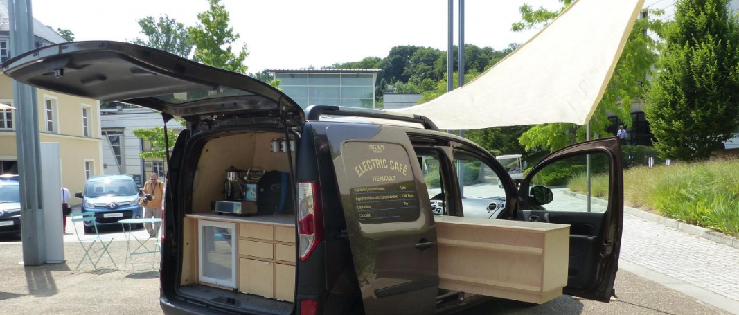 Tout récemment, Hedimag a aménagé le nouveau Kangoo électrique Z.E. pour la vente de boissons chaudes (voir photo ci-contre) : intérieur en bouleau massif, espace machine à café, bar coulissant vers extérieur… un aménagement créé sur mesure!